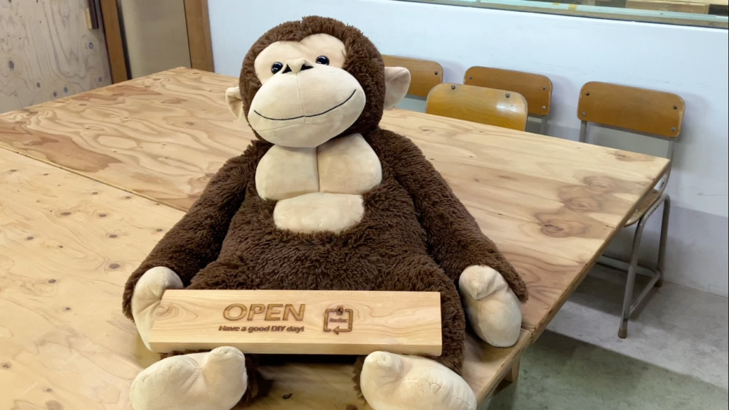 店内は沢山の木に囲まれた温かい雰囲気、工具を借りられる工房も併設されています。